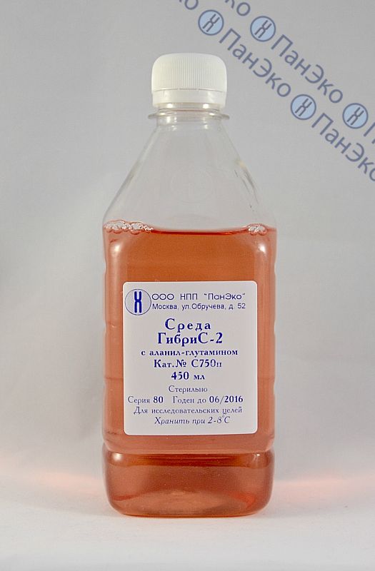 Применение. Бессывороточная среда «Гибрис» разработана для культивирования гибридомных клеток мыши, используемых для получения моноклональных антител, и способна поддерживать достаточную плотность культуры с высокой продуктивностью антител в течение 2-3 пассажей. При добавлении 1-2% эмбриональной телячьей сыворотки (ЭТС) она может быть использована для длительного культивирования клеток с той же эффективностью, что и питательная среда, содержащая 10% ЭТС.