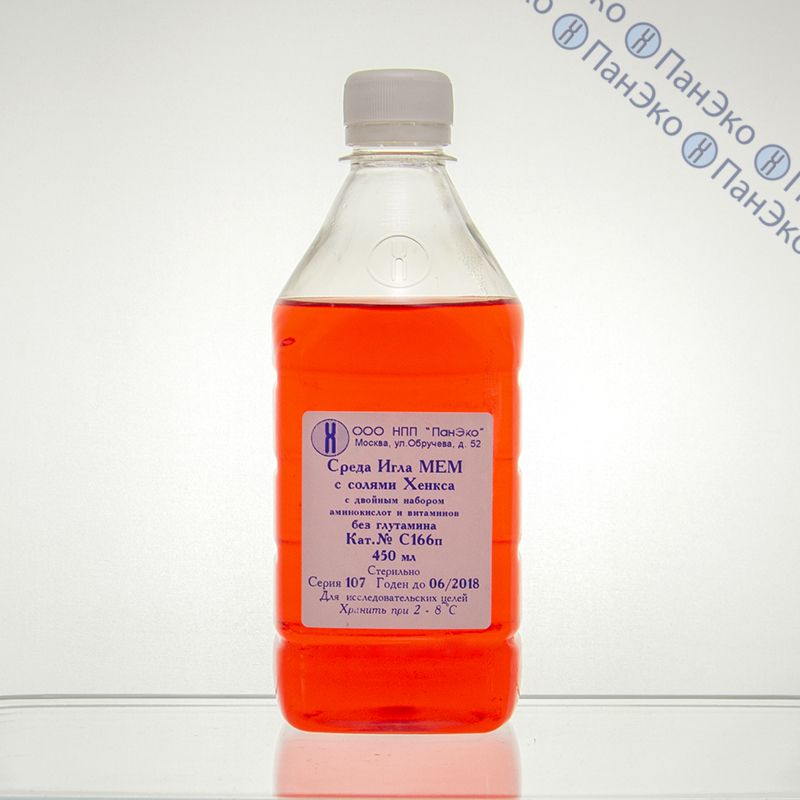 Среда Игла с солями Хенкса, с двойным набором витаминов и аминокислот, без глутамина, 450 мл, ПЭТ