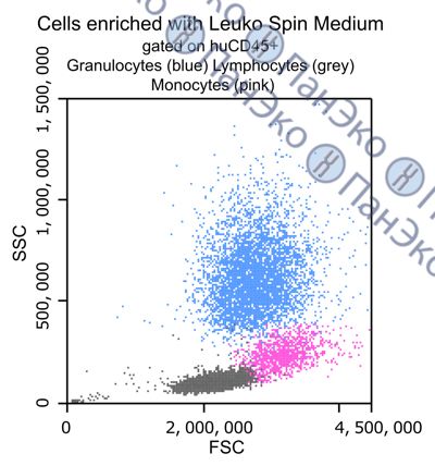- Для выделения лейкоцитов цельную кровь разбавляют в соотношении 1:2 отмывочным буфером или PBS.