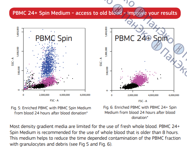 - После этого разбавленную кровь наслаивают на среду PBMC Spin и центрифугируют в течение 30 мин при 1000 g и температуре 18 - 20 °С.