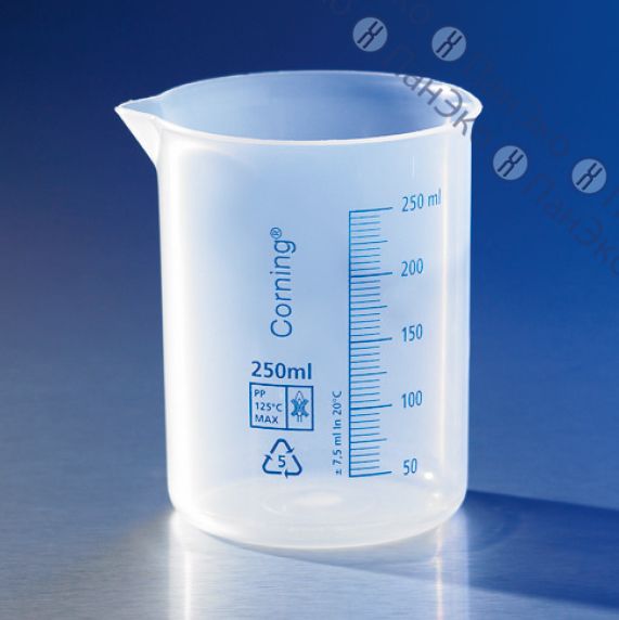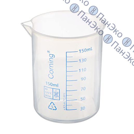 Прозрачный стакан для измерения объёма жидкости.
