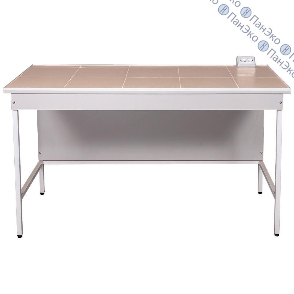 В правом верхнем углу стола расположена электропанель с двумя розетками. Обе розетки с заземлением и шторками, рассчитаны на ток до 16 А и напряжение до 250 В.