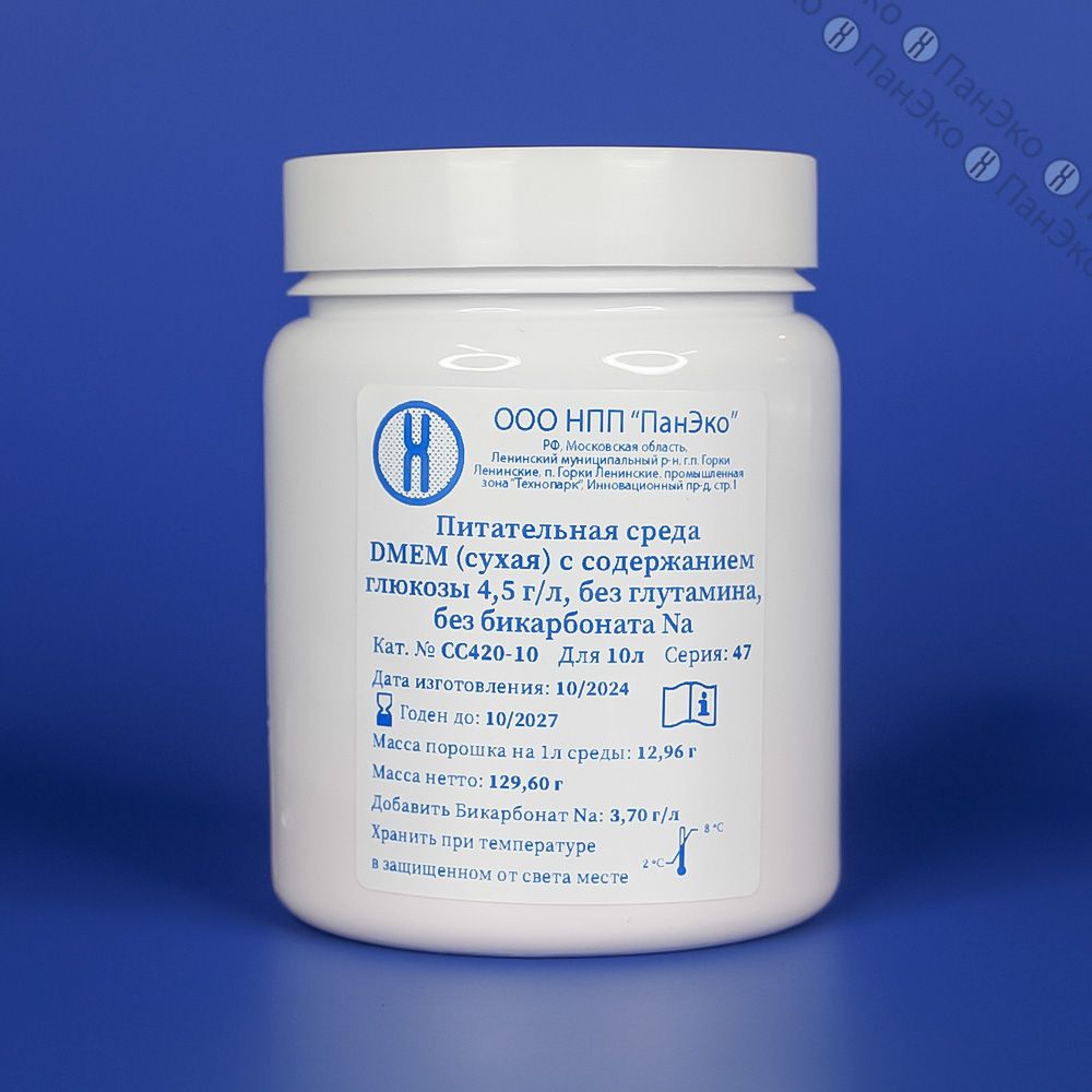 Сухая среда DMEM с содержанием глюкозы не менее 4,5 г/л, без глутамина, без бикарбоната