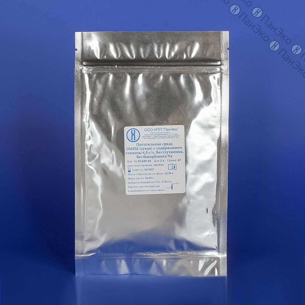 Сухая среда DMEM с содержанием глюкозы не менее 4,5 г/л, без глутамина, без бикарбоната