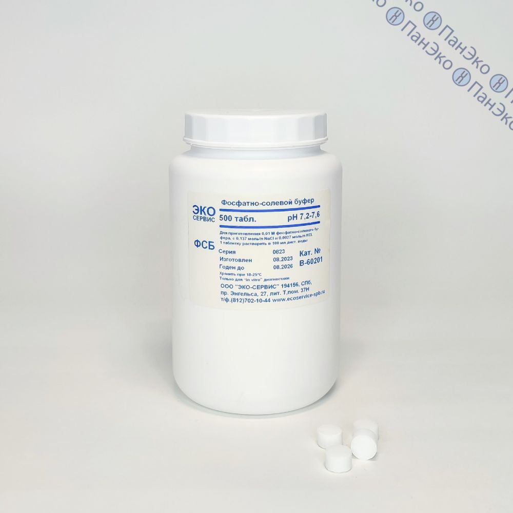 Таблетки фосфатно-солевого буфера широко используются в биологии для различных целей. Содержат основу для буферного раствора, выпускающуюся в удобной форме водорастворимых таблеток. Буфер не токсичен к клеткам, поэтому применяется для промывки клеток, а также транспортировки тканей, разведении концентрированных растворов и сухих веществ.