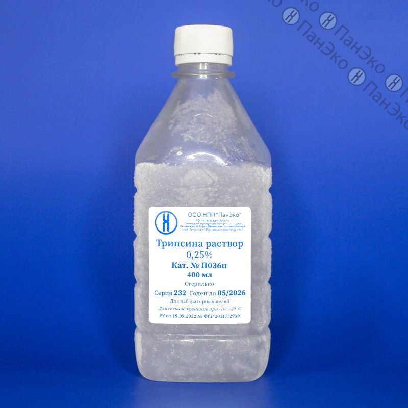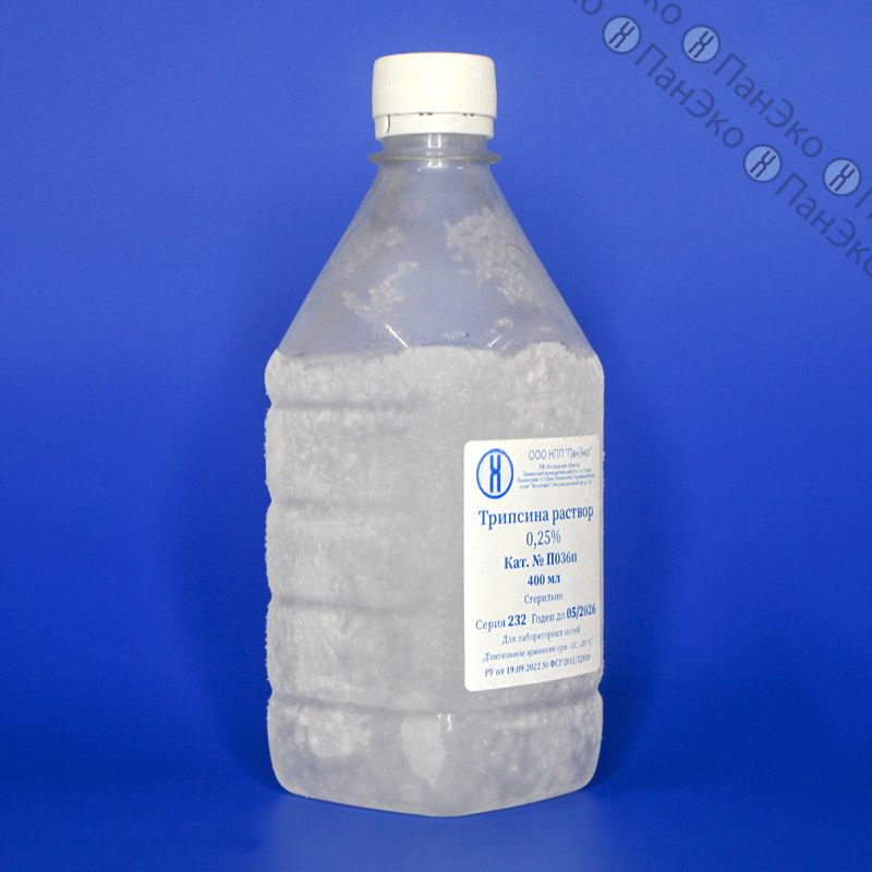 Трипсина раствор, 0,25%, 400 мл, стерильный, ПЭТ-тара, ПанЭко