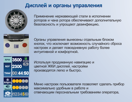 Универсальная центрифуга для различной лабораторной посуды. Имеет ЖК-дисплей.