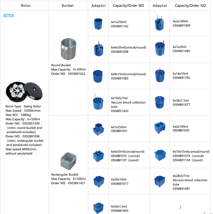 - Доступны различные адаптеры, подходящие ко многим пробиркам, используемые в больницах. Поворотный ротор 6x500 мл позволяет центрифугировать до 168 штук пробирок для взятия крови в одном цикле.