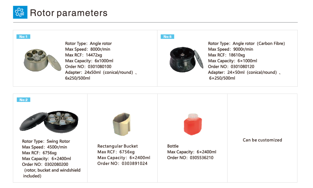 - Система управления центрифугой (опция). Может контролировать от 1 до 100 центрифуг через терминал (компьютер), контролировать состояние работы центрифуг и сохранять соответствующие записи о работе центрифуги, устанавливать безопасную связь с центрифугой и дистанционно управлять запуском и остановкой центрифуги.