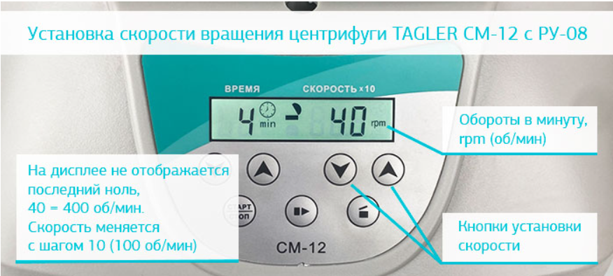Менять скорость вращения можно прямо во время работы центрифуги, она плавно ускорит или замедлит вращение до нужных значений.